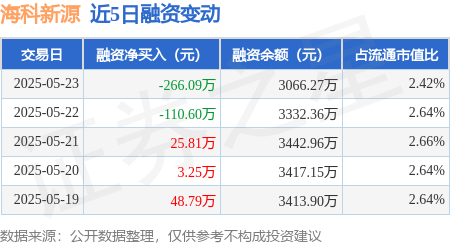 证券之星消息,5月23日,海科新源(301292)融资买入203.46万元,融资偿还469.55万元,融资净卖出266.09万元,融资余额3066.27万元。