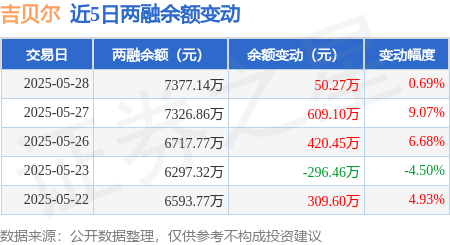 证券之星消息,5月28日,吉贝尔(688566)融资买入629.17万元,融资偿还578.89万元,融资净买入50.27万元,融资余额7377.14万元,近3个交易日已连续净买入累计1079.82万元,近20个交易日中有11个交易日出现融资净买入。