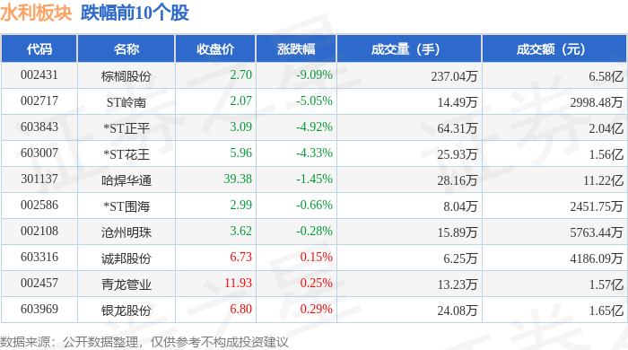 从资金流向上来看,当日水利板块主力资金净流入3744.89万元,游资资金净流出1.94亿元,散户资金净流入1.57亿元。水利板块个股资金流向见下表: