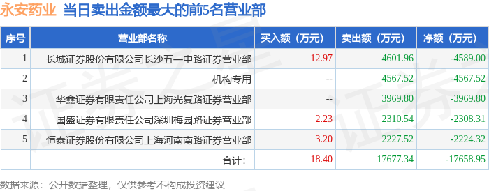 证券之星消息,沪深交易所2025年5月29日公布的交易公开信息显示,永安药业(002365)因日跌幅偏离值达到7%的前5只证券登上龙虎榜。此次是近5个交易日内第5次上榜。