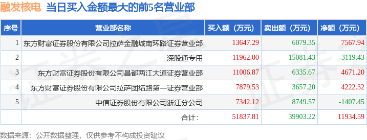 证券之星消息,沪深交易所2025年5月29日公布的交易公开信息显示,融发核电(002366)因日涨幅偏离值达到7%的前5只证券,日换手率达到20%的前5只证券登上龙虎榜。此次是近5个交易日内第3次上榜。