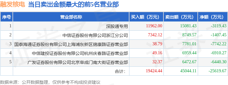 从龙虎榜公布的当日买卖数据来看,北向资金合计净卖出3119.43万元。