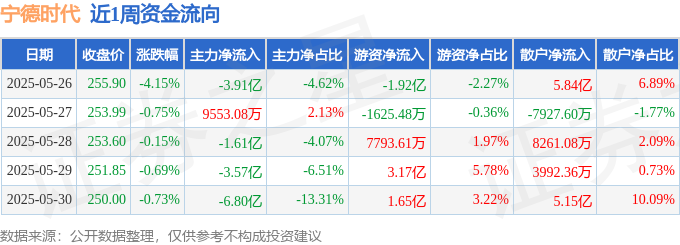 沪深股通持股方面,截止2025年5月30日收盘,宁德时代深股通持股数为4.52亿股,占流通股比为1160.0%。