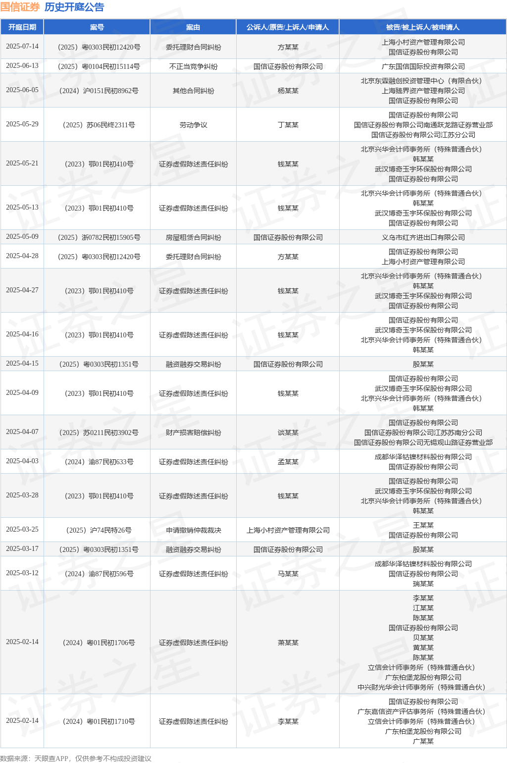 证券之星消息,根据天眼查APP显示,近日公布了一则国信证券股份有限公司作为被告/被上诉人的开庭公告,详细内容如下: