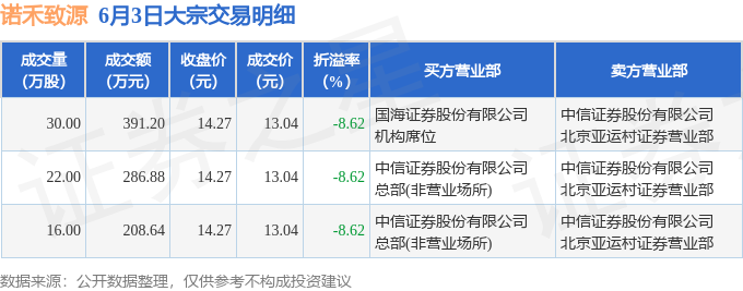 证券之星消息,6月3日诺禾致源发生大宗交易,交易数据如下: