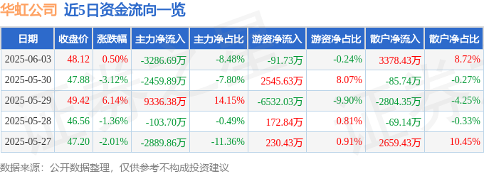 证券之星消息,截至2025年6月3日收盘,华虹公司(688347)报收于48.12元,上涨0.5%,换手率2.04%,成交量7.98万手,成交额3.87亿元。
