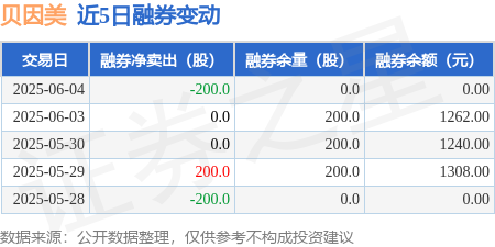 证券之星消息,6月4日,贝因美(002570)融资买入6019.11万元,融资偿还5410.09万元,融资净买入609.02万元,融资余额3.82亿元。
