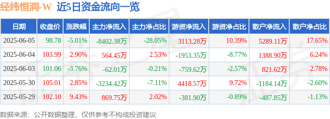 6月5日的资金流向数据方面,主力资金净流出8402.38万元,占总成交额28.05%,游资资金净流入3113.28万元,占总成交额10.39%,散户资金净流入5289.11万元,占总成交额17.65%。