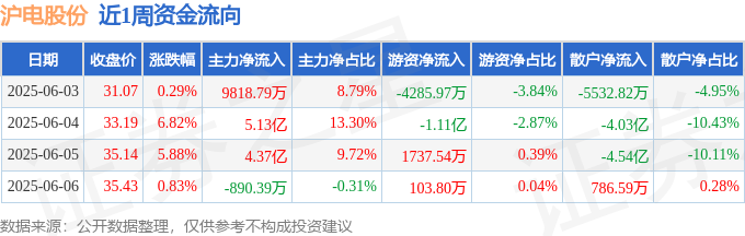 沪深股通持股方面,截止2025年6月6日收盘,沪电股份深股通持股数为8586.63万股,占流通股比为449.0%。