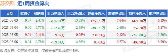 资金流向数据方面,本周苏交科主力资金合计净流出4028.03万元,游资资金合计净流入1689.86万元,散户资金合计净流入2338.18万元。本周资金流向一览见下表: