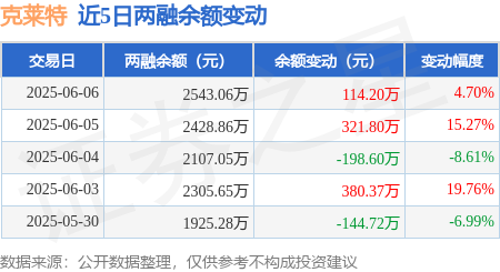 证券之星消息,6月6日,克莱特(831689)融资买入313.74万元,融资偿还199.54万元,融资净买入114.2万元,融资余额2543.06万元,近20个交易日中有13个交易日出现融资净买入。