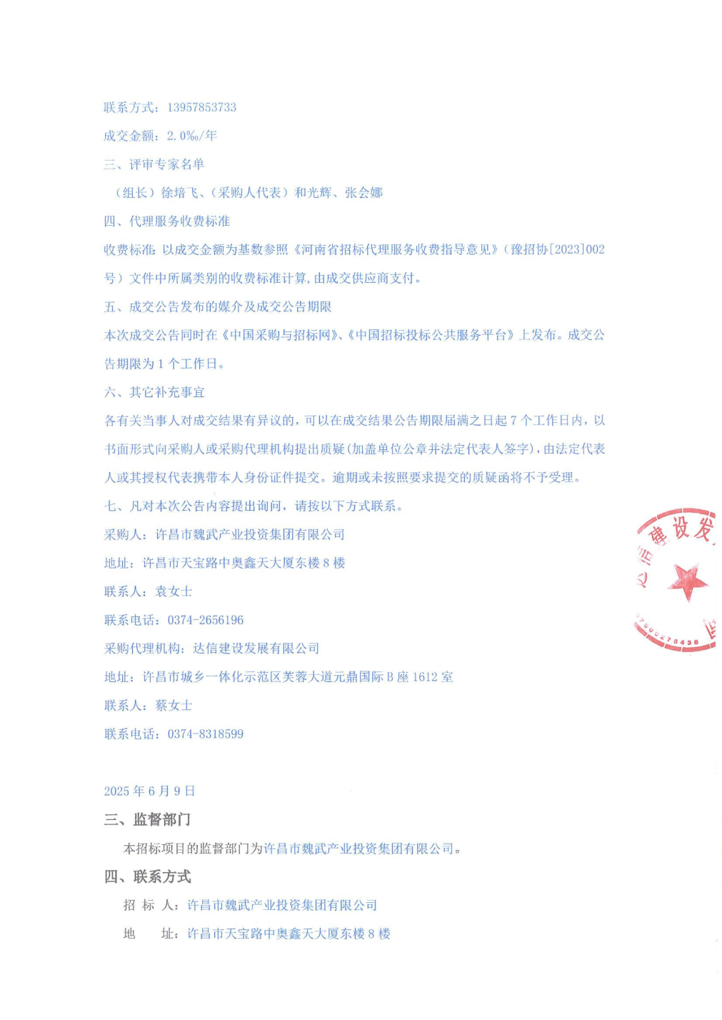 证券之星消息,根据天眼查APP信息整理,6月9日公布的《许昌市魏武产业投资集团有限公司2025年面向专业投资者非公开发行公司债券成交结果公告》中显示西部证券股份有限公司中标。公告内容如下: