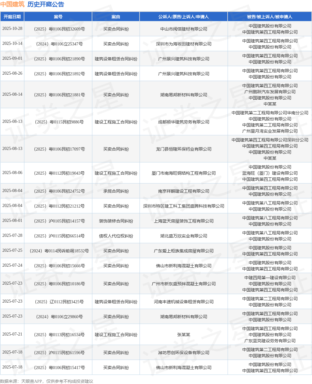证券之星消息,根据天眼查APP显示,近日公布了一则中国建筑股份有限公司作为被告/被上诉人的开庭公告,详细内容如下: