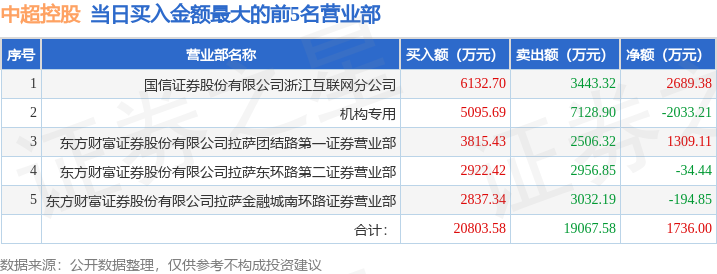 从龙虎榜公布的当日买卖数据来看,机构合计净卖出6044.18万元。上海松林路等知名游资榜上有名。(知名游资上海松林路一般指联储证券股份有限公司上海松林路证券营业部席位,根据市场资料整理,仅供参考)