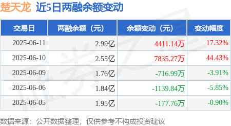 证券之星消息,6月11日,楚天龙(003040)融资买入2.44亿元,融资偿还2.0亿元,融资净买入4410.96万元,融资余额2.98亿元,当日融资净买入排名第47。