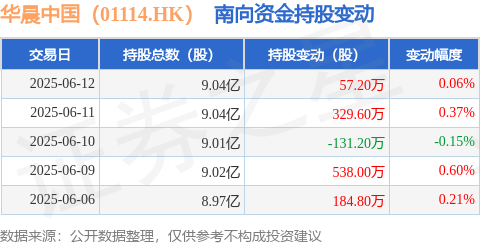 证券之星消息,6月12日南向资金增持57.2万股华晨中国(01114.HK)。近5个交易日中,获南向资金增持的有4天,累计净增持978.4万股。近20个交易日中,获南向资金增持的有13天,累计净增持160.8万股。截至目前,南向资金持有华晨中国(01114.HK)9.04亿股,占公司已发行普通股的17.92%。