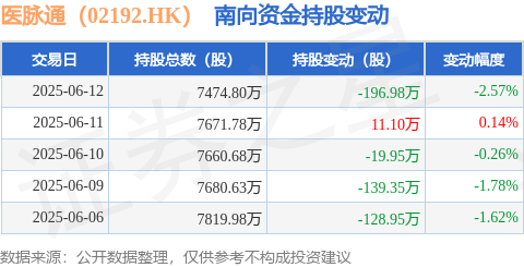 证券之星消息,6月12日南向资金减持196.98万股医脉通(02192.HK)。近5个交易日中,获南向资金减持的有4天,累计净减持474.13万股。近20个交易日中,获南向资金减持的有11天,累计净减持495.42万股。截至目前,南向资金持有医脉通(02192.HK)7474.8万股,占公司已发行普通股的10.19%。