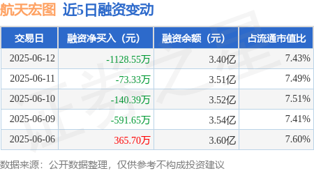 证券之星消息,6月12日,航天宏图(688066)融资买入769.42万元,融资偿还1897.96万元,融资净卖出1128.55万元,融资余额3.4亿元。