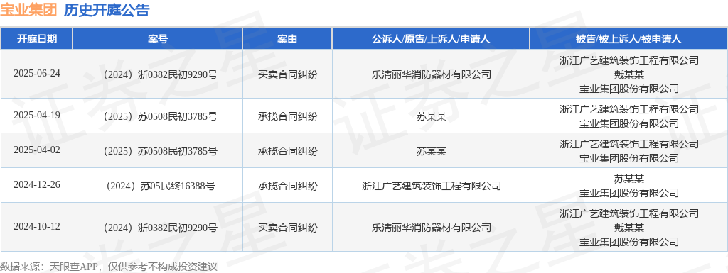 证券之星消息,根据天眼查APP显示,近日公布了一则宝业集团股份有限公司作为被告/被上诉人的开庭公告,详细内容如下: