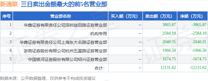 证券之星消息,沪深交易所2025年7月1日公布的交易公开信息显示,新通联(603022)因非ST、*ST和S证券连续三个交易日内收盘价格跌幅偏离值累计达到20%的证券登上龙虎榜。此次是近5个交易日内第4次上榜。