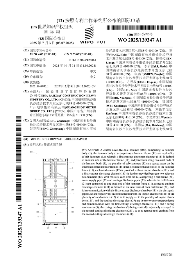 证券之星消息,根据企查查数据显示铁建重工(688425)公布了一项国际专利申请,专利名为“集束式潜孔锤”,专利申请号为PCT/CN2024/128861,国际公布日为2025年7月3日。