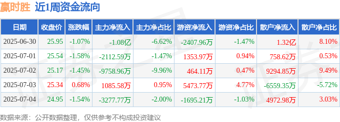资金流向数据方面,本周赢时胜主力资金合计净流出2.49亿元,游资资金合计净流入3188.68万元,散户资金合计净流入2.17亿元。本周资金流向一览见下表:
