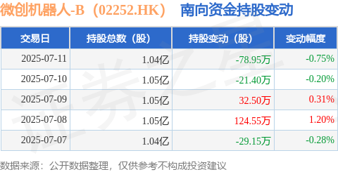 证券之星消息,7月11日南向资金减持78.95万股微创机器人-B(02252.HK)。近5个交易日中,获南向资金增持的有2天,累计净增持27.55万股。近20个交易日中,获南向资金减持的有10天,累计净减持28.8万股。截至目前,南向资金持有微创机器人-B(02252.HK)1.04亿股,占公司已发行普通股的10.15%。