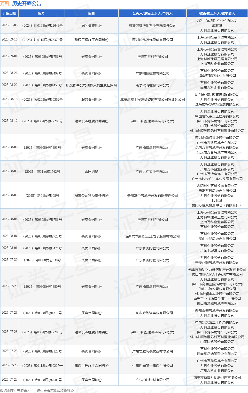 证券之星消息,根据天眼查APP显示,近日公布了一则万科企业股份有限公司作为被告/被上诉人的开庭公告,详细内容如下: