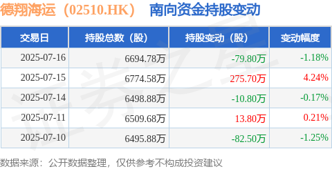 证券之星消息,7月16日南向资金减持79.8万股德翔海运(02510.HK)。近5个交易日中,获南向资金增持的有2天,累计净增持116.4万股。近20个交易日中,获南向资金增持的有12天,累计净增持1949.1万股。截至目前,南向资金持有德翔海运(02510.HK)6694.78万股,占公司已发行普通股的4.01%。