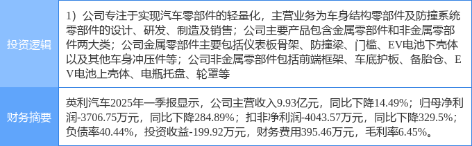 该股为汽车零部件概念热股,当日汽车零部件概念上涨0.85%。