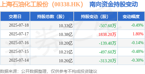 证券之星消息,7月18日南向资金减持507.6万股上海石油化工股份(00338.HK)。近5个交易日中,获南向资金增持的有1天,累计净增持380.4万股。近20个交易日中,获南向资金减持的有14天,累计净减持4231.4万股。截至目前,南向资金持有上海石油化工股份(00338.HK)10.33亿股,占公司已发行普通股的32.14%。