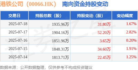 证券之星消息,7月18日南向资金增持31.8万股港铁公司(00066.HK)。近5个交易日中,获南向资金增持的有5天,累计净增持144.7万股。近20个交易日中,获南向资金增持的有19天,累计净增持557.3万股。截至目前,南向资金持有港铁公司(00066.HK)1935.96万股,占公司已发行普通股的0.3%。