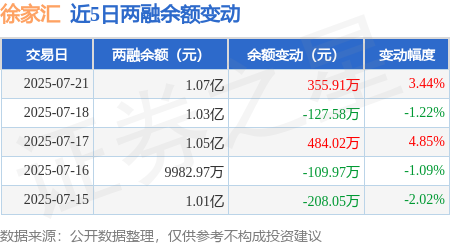 证券之星消息,7月21日,徐家汇(002561)融资买入797.03万元,融资偿还441.12万元,融资净买入355.91万元,融资余额1.07亿元。