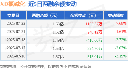 证券之星消息,7月22日,XD氯碱化(600618)融资买入3452.12万元,融资偿还2298.36万元,融资净买入1153.76万元,融资余额1.62亿元。