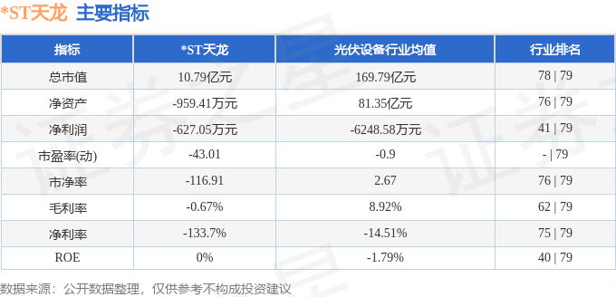 *ST天龙2025年一季报显示,公司主营收入474.7万元,同比下降91.31%;归母净利润-627.05万元,同比下降231.0%;扣非净利润-632.41万元,同比下降328.8%;负债率104.27%,财务费用13.94万元,毛利率-0.67%。*ST天龙(300029)主营业务:新能源电站的投资、新能源EPC工程、设备销售及电站运维等业务。