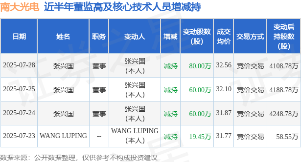 南大光电近半年内的董监高及核心技术人员增减持详情如下: