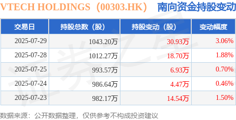 证券之星消息,7月29日南向资金增持30.93万股VTECH HOLDINGS(00303.HK)。近5个交易日中,获南向资金增持的有5天,累计净增持75.57万股。近20个交易日中,获南向资金增持的有20天,累计净增持292.01万股。截至目前,南向资金持有VTECH HOLDINGS(00303.HK)1043.2万股,占公司已发行普通股的4.11%。