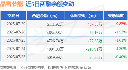 证券之星消息,7月29日,晶雪节能(301010)融资买入1142.6万元,融资偿还685.25万元,融资净买入457.35万元,融资余额5111.92万元。