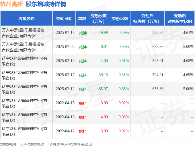 该股近半年内有股东持股变动,合计净减持166.12万股,股东增减持明细如下表: