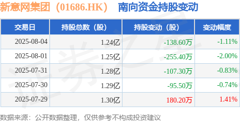 证券之星消息,8月4日南向资金减持138.6万股新意网集团(01686.HK)。近5个交易日中,获南向资金减持的有4天,累计净减持416.6万股。近20个交易日中,获南向资金增持的有13天,累计净增持964.5万股。截至目前,南向资金持有新意网集团(01686.HK)1.24亿股,占公司已发行普通股的5.24%。