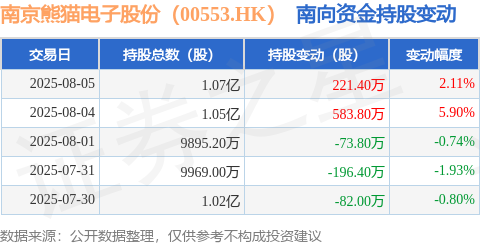 证券之星消息,8月5日南向资金增持221.4万股南京熊猫电子股份(00553.HK)。近5个交易日中,获南向资金增持的有2天,累计净增持453.0万股。近20个交易日中,获南向资金减持的有12天,累计净减持170.6万股。截至目前,南向资金持有南京熊猫电子股份(00553.HK)1.07亿股,占公司已发行普通股的44.2%。