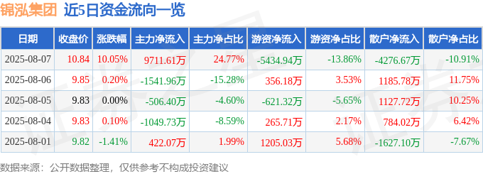 8月7日的资金流向数据方面,主力资金净流入9711.61万元,占总成交额24.77%,游资资金净流出5434.94万元,占总成交额13.86%,散户资金净流出4276.67万元,占总成交额10.91%。