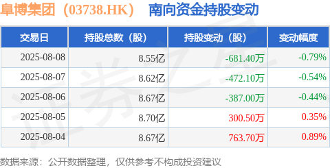 证券之星消息,8月8日南向资金减持681.4万股阜博集团(03738.HK)。近5个交易日中,获南向资金减持的有3天,累计净减持476.3万股。近20个交易日中,获南向资金减持的有12天,累计净减持2418.8万股。截至目前,南向资金持有阜博集团(03738.HK)8.55亿股,占公司已发行普通股的34.82%。