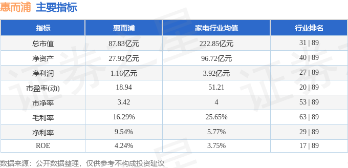 该股主要指标及行业内排名如下: