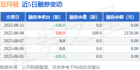 证券之星消息,8月11日,亚玛顿(002623)融资买入2552.98万元,融资偿还2008.68万元,融资净买入544.3万元,融资余额1.12亿元。
