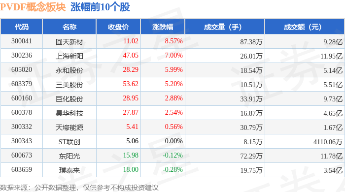 证券之星消息,8月12日PVDF概念板块较上一交易日上涨1.75%,回天新材领涨。当日上证指数报收于3665.92,上涨0.5%。深证成指报收于11351.63,上涨0.53%。PVDF概念板块个股涨跌见下表: