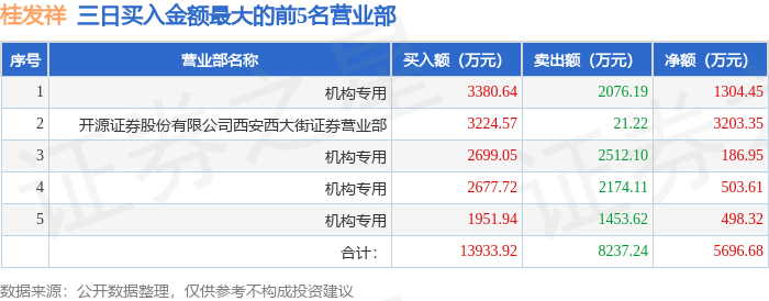 证券小知识:龙虎榜是交易所披露的竞价交易公开信息,现身龙虎榜的个股都是当日最为活跃的个股,是投资者日常重点关注的数据。交易所公布当日买入金额和卖出金额前五名的席位,其中一些席位代表特殊意义,如机构专用席位是指基金专用席位、券商自营专用席位、社保专用席位、券商理财专用席位、保险机构专用席位、保险机构租用席位、QFII专用席位等机构投资者买卖证券的专用通道和席位。深股通专用、沪股通专用为北向资金的交易席位。从龙虎榜数据可以发现和研究机构、游资和散户的资金动向。一些营业部席位经常上榜,市场知名度较高,投资者整理代表散户、游资、量化等不同资金的营业部席位。