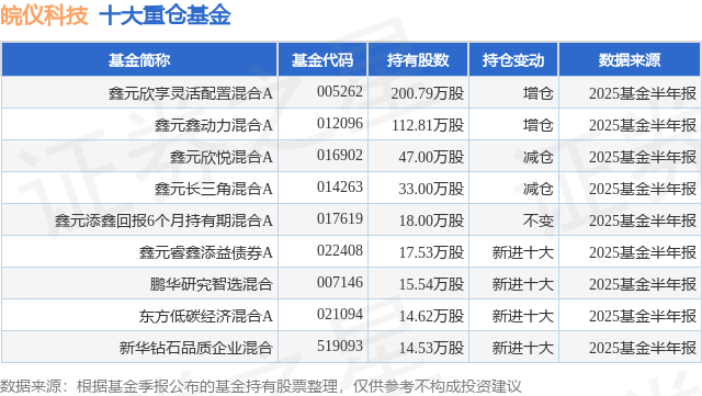 根据2025基金半年报公募基金重仓股数据,重仓该股的公募基金共9家,其中持有数量最多的公募基金为鑫元基金的鑫元欣享灵活配置混合A。鑫元欣享灵活配置混合A目前规模为3.16亿元,最新净值1.1997(8月13日),较上一交易日上涨1.51%,近一年上涨43.49%。该公募基金现任基金经理为李彪。李彪在任的基金产品包括:鑫元安鑫回报混合A,管理时间为2021年3月25日至今,期间收益率为22.92%;鑫元鑫动力混合A,管理时间为2021年7月13日至今,期间收益率为-9.13%;鑫元长三角混合A,管理时间为2022年3月30日至今,期间收益率为4.28%。