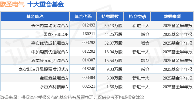 重仓欧圣电气的公募基金请见下表: