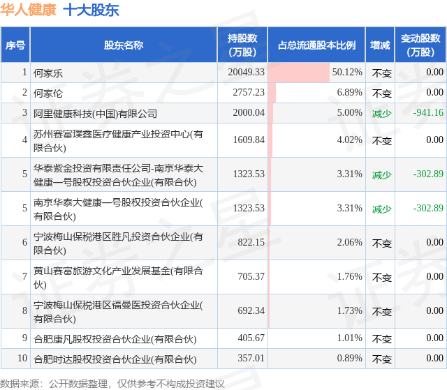 根据华人健康2025年一季报公布的十大股东详情如下: